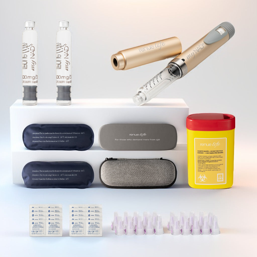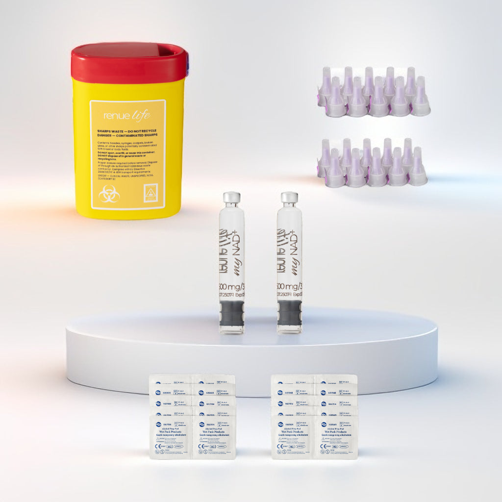 myNAD+™ by Renue Life se află la intersecția dintre inovație și măiestrie. Fiecare cartuș reflectă o pregătire meticuloasă, oferind NAD+ ultrapură într-o formă la fel de rafinată pe cât este de practică. Proiectat exclusiv pentru myNAD+™ Precision Pen, acest format asigură o preparare controlată și repetabilă, cu o ușurință excepțională — fie acasă, la birou sau în deplasare.